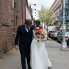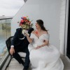 I fell in love with this dress as soon as I tried it on – it was the perfect balance of being classic, while the fabric made it feel like the embodiment of modern elegance. I am 5' 8" for reference, and wore a 2" heel with this dress. It was only worn for about 3 hours at the ceremony.