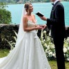 For reference, I’m just under 5’4 and wore 4” heels and a cathedral length veil with the dress. I’m between a 34C and 36C in my bust.