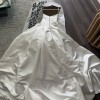 This gown is beautiful!! Features a unique strapless neckline with a fitted waist and cathedral length train with buttons all the way down the back.