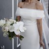 The off-the-shoulder neckline adds a touch of elegance and captures a timeless romance that photographs beautifully. This strapless dress allows for easy movement, while the mid-back design ensures a flattering and secure fit, perfect for dancing the night away. The back has buttons that need to be done up individually, but a beautiful feature, and the tulle across the front was great, as someone with a bigger bust, it hid any cleavage.