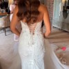 The elegant mermaid silhouette hugs my curves beautifully, creating a flattering and sophisticated look. With a delicate ivory chantilly lace overlay adorned with exquisite 3D flowers, this dress truly feels like a work of art. The curve neckline and strapless design added a touch of romantic allure, while the corset back allowed for a perfect fit that made me feel both comfortable and secure throughout the day.