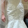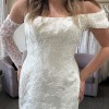 ****We are including with the dress at no charge $500 worth of matching Ruth / Maggie Sottero lace that we purchased that can be used to make sleeves and detachable shoulders to achieve different looks for your wedding! Dress has not been worn or altered and still has tags and original receipt available for proof of purchase! This exquisite Ruth dress by Maggie Sottero epitomizes timeless elegance and modern romance, making it an ideal choice for brides seeking to make a memorable statement on their special day. The fit-and-flare silhouette hugs your curves beautifully, accentuating the waist before flowing gracefully into a stunning train. Crafted from luxurious ivory satin, this dress exudes a soft sheen that catches the light with every movement, ensuring you feel radiant as you walk down the aisle.