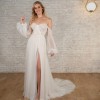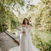 Crafted with a corset back, this dress offers a perfect fit that enhances your natural curves, ensuring you feel as beautiful as you look on your special day. The intricate detailing combined with the delicate draping exudes sophistication, while the playful skirt allows for ease of movement, making it ideal for both the ceremony and reception.