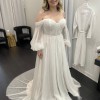 This stunning A-Line wedding dress by Stella York, model 7802, embodies timeless elegance and romance. The soft ivory fabric cascades beautifully to the floor, creating a flowing silhouette that flatters every figure. The sweetheart neckline adds a touch of charm, beautifully framing the décolletage while drawing attention to the bride’s radiant glow.