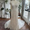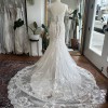 This dress features a Floor lengthLace skirt, with and underlay of Chantilly lace, the train also features a double trim edge detail.