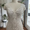 The Maggie sottero dress is a sample and is in good condition with only a few minor flaws, as pictured above, two button loops need to be changed out, along with some few stray threads that should be trimmed.