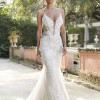 Featuring a flattering V-neckline and delicate spaghetti straps, this gown offers just the right amount of allure without sacrificing comfort. The low back adds a touch of sultriness, allowing you to radiate confidence from every angle while maintaining a classic bridal charm. The floor-length design lends a dramatic flair that is sure to leave your guests in awe as you glide down the aisle.