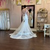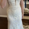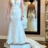 NEW- NEVER WORN! Simply just fell in love with another dress. Size 12. Ivory lace and tulle w/ porcelain tulle illusion neckline! Custom hem of 48 inches from bottom of v neck illusion neckline. Beautiful beading and detail with train!