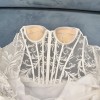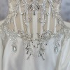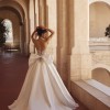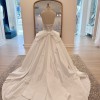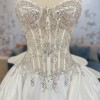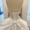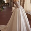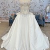Strapless, sweetheart-neckline ballgown with satin skirt, sheer lace bodice embellished with signature Pnina mirror crystals, and Pnina bow.