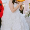 This gown feels like it’s made from a million delicate blossoms. The satin bodice is elegant and refined, perfect for creating a graceful, fairy-like look at an outdoor wedding. The skirt naturally flares out with a soft, airy volume. I purchased this dress from this very platform last year and wore it only once. The previous owner also wore it just once. It was professionally dry-cleaned immediately after the wedding and is in excellent condition. The satin bodice has room for slight alterations (either letting out or taking in), and the skirt can be gently hooked at the waist for easier movement. I hope this beautiful gown brings the next bride the same magic and joy it brought me on my special day.