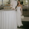 Also comes with a custom tule veil, which is not pictured. This matches the length of the gown.