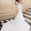 “The LOREN gown from ÉLYSÉE by Enzoani is a modern take on the classic crepe silhouette, featuring a plunging V-neckline and sparkling illusion lace. The body-contouring lace cut-outs and illusion low back create a sexy and flattering look, perfect for a bride wanting to make a statement“