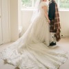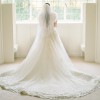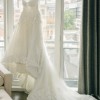 Structured bodice fastens by zip. Small smudge on the underside of the train, and some flower details were loose. but otherwise undamaged. Comes with dress bag and hanger. Worn with underskirt. Can negotiate additional sale of underskirt for those interested.