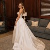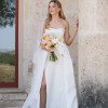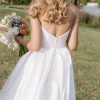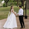 Sarah Seven Agatha gown with 1 ft train extension, tag size 2, best fit for US2-4. When I wore the dress, my measurements were as listed. I did have the dress taken in at the bust/waist so there is a bit of room to let it back out, or it could be taken in more. There is also much more room in the bust due to the draped corseted construction, if you remove the cups you could probably fit up to a C or small D— I only added the cups to fill the space as I am only an A.