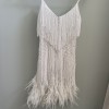 Worn once brand new condition specialty cleaned LOTTIE WHITE is destined to make herself known at the most extravagant parties. The ultimate show-stopping, party dress you will stand out wearing her. Individually hand embellished with white crystal waterfall beading to create a mesmerising illusion when worn. - White beaded fringing and sequins with flat beaded panelling on the waist to accentuate your curves and flatter your figure. - Hand embellished white beading - Feather white hemline - Flat sequin and beaded base - V neck neckline - Concealed zip - Fully lined in chiffon - Outer: 100% Viscose Lining: 96% Polyester 4% Elastane Trim: 100% Feather