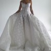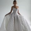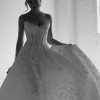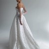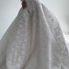 The “Romare” gown is a luxurious couture piece, designed in French lace with a structured strapless bodice, elegant fitted silhouette, and a soft scalloped train. Romantic and refined, it blends classic bridal beauty with clean, contemporary lines.