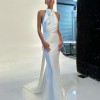 For minimalism with main character energy meet Cameron. Fluid draping from the halter neck falls effortlessly into a relaxed silhouette. Crafted from satin triacetate, Cameron’s showstopping low back is celebrated via its long ties at the neck.