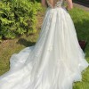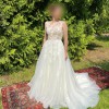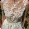 This Pronovias wedding dress is the perfect blend of elegance and whimsy that made my special day unforgettable. The exquisite A-line silhouette gave me the feeling of floating as I walked down the aisle, while the sheer neckline added a touch of allure without sacrificing sophistication. The traditional ivory color combined with the delicate tulle fabric creates a dreamy effect that radiates romance in every moment.