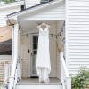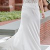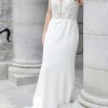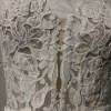 From online: This dress features a flattering V-neckline, a natural waist, and a soft chapel-length train. The top is made of delicate lace that flows beautifully into a smooth, simple skirt. It strikes the perfect balance between effortless and elegant, with a romantic, slightly whimsical vibe. It's designed for free-spirited brides who appreciate unique beauty and laid-back elegance.