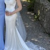 Worn once for my dream wedding in sun-soaked Ireland, this KYHA Studios Salacea gown in bright ivory silk was everything I hoped for and more. The luxurious silk added a sense of quiet drama and elegance to our black tie celebration—it draped beautifully and made me feel both timeless and effortlessly feminine. I changed into a second look after dinner, so the train has very minimal wear. The dress is a standard KYHA size 3 with no alterations aside from the hem (I’m 5’6” and wore 3.5” Loeffler Randall heels) and lightly sewn-in cups for added support. I’m also happy to include a delicate lace bolero from KYHA at no cost, perfect if you'd like an optional second look. Also open to possibly including my second dress, which is a similar silk material and from Reformation (they no longer make this style). If you're based in New York, you're welcome to try it on in Brooklyn—just reach out!