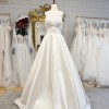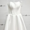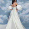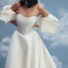 This enchanting A-line gown made of mikado fabric perfectly highlights your elegance and sophistication. The sweetheart neckline of the corset adds a romantic touch, while the decorative pleats on the back of the skirt create a refined silhouette. Buttons running down the long train add a touch of sophistication. The detachable voluminous sleeves allow for versatile styling, adding charm and uniqueness to your bridal look.
