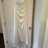 A classic Suzanne Neville shape. Suzanne Neville is a designer out of london all handstiched no mass material or manufaturing. Detachable sleeves included. This was a sample and has never been worn by a bride. Very very minor pull shown in the pictures above. Still just very hard to detect. This gown retails for almost 5k and I am selling it for 1,300. The material is amazing. The inside corset is amazing, pull tight and snatches you in. This dress is is lined. Never altered size 14/16. I am 5'9" with 40 inch hips and a 29 inch waist, in street clothes I wear a size 8. It needed to be taken in just bit to fit like a glove... but i never altered it because we decided to elope.
