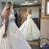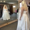 Dress is new and has never been worn, only tried on a few times. A French bustle was added to the dress and the dress has also been slightly hemmed. I purchased the dress from Hopes Bridal. I do have proof of payment and authenticity. Veil is not included with dress.