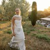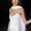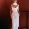The Galaxy Cape is a new interpretation of the Galaxy dress, which was originally created for the red carpet, featuring a cinched waist and draped neckline inspired by the classic Vivienne Westwood Ball Tie gown. The gown is created in pearl white FSC-certified crepe satin, with a contrasting silk georgette drape across the décolletage, certified as organic, and 18th-century Watteau style train for added drama.
