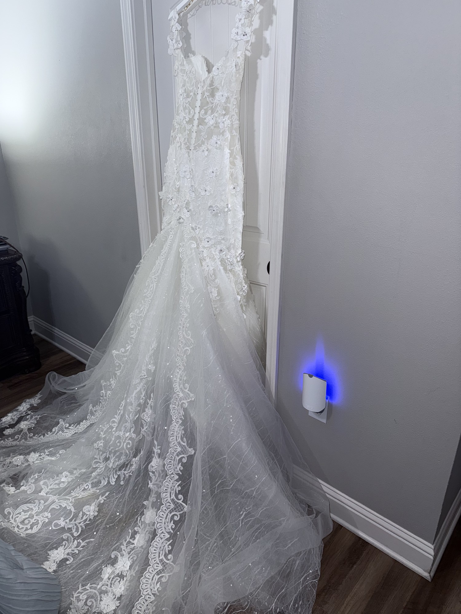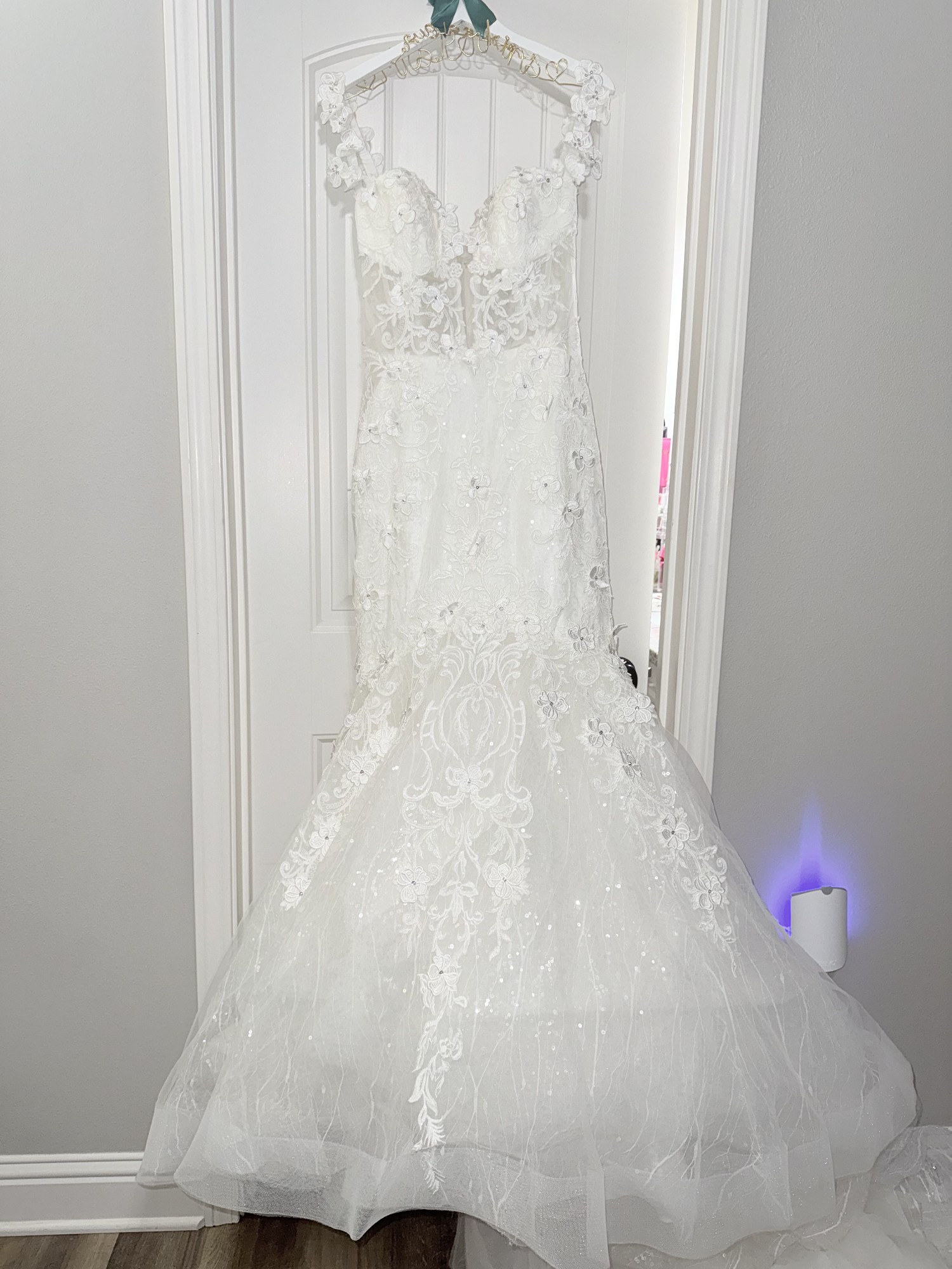 ✨ Bridal elegance at its finest! Selling my Eve of Milady Style 1667 wedding gown – worn once, in excellent condition, and includes a matching lace-trimmed veil that beautifully complements the dress.