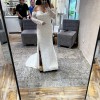 The Jenny by Jenny Yoo Dove Long-Sleeve Off-The-Shoulder Lace Wedding Gown epitomizes romantic elegance with its delicate lace and timeless off-the-shoulder silhouette, offering a captivating look for the modern bride. With its graceful long sleeves and flattering skirt with side slit, this gown combines classic beauty with contemporary sophistication, ensuring a bride feels truly enchanting on her wedding day.