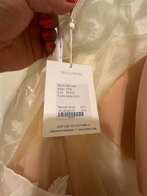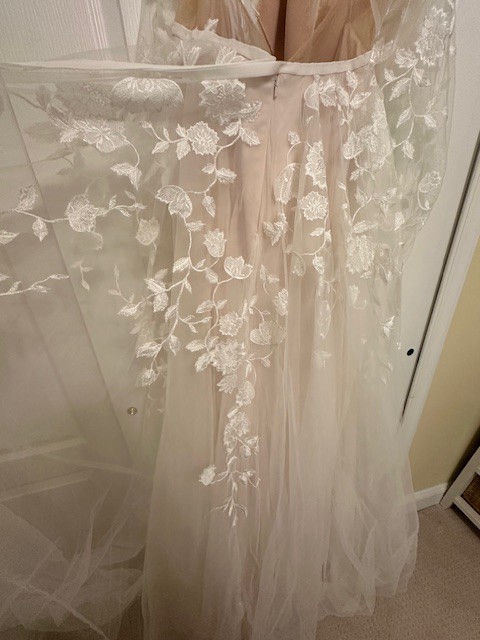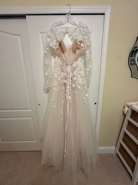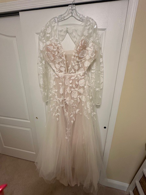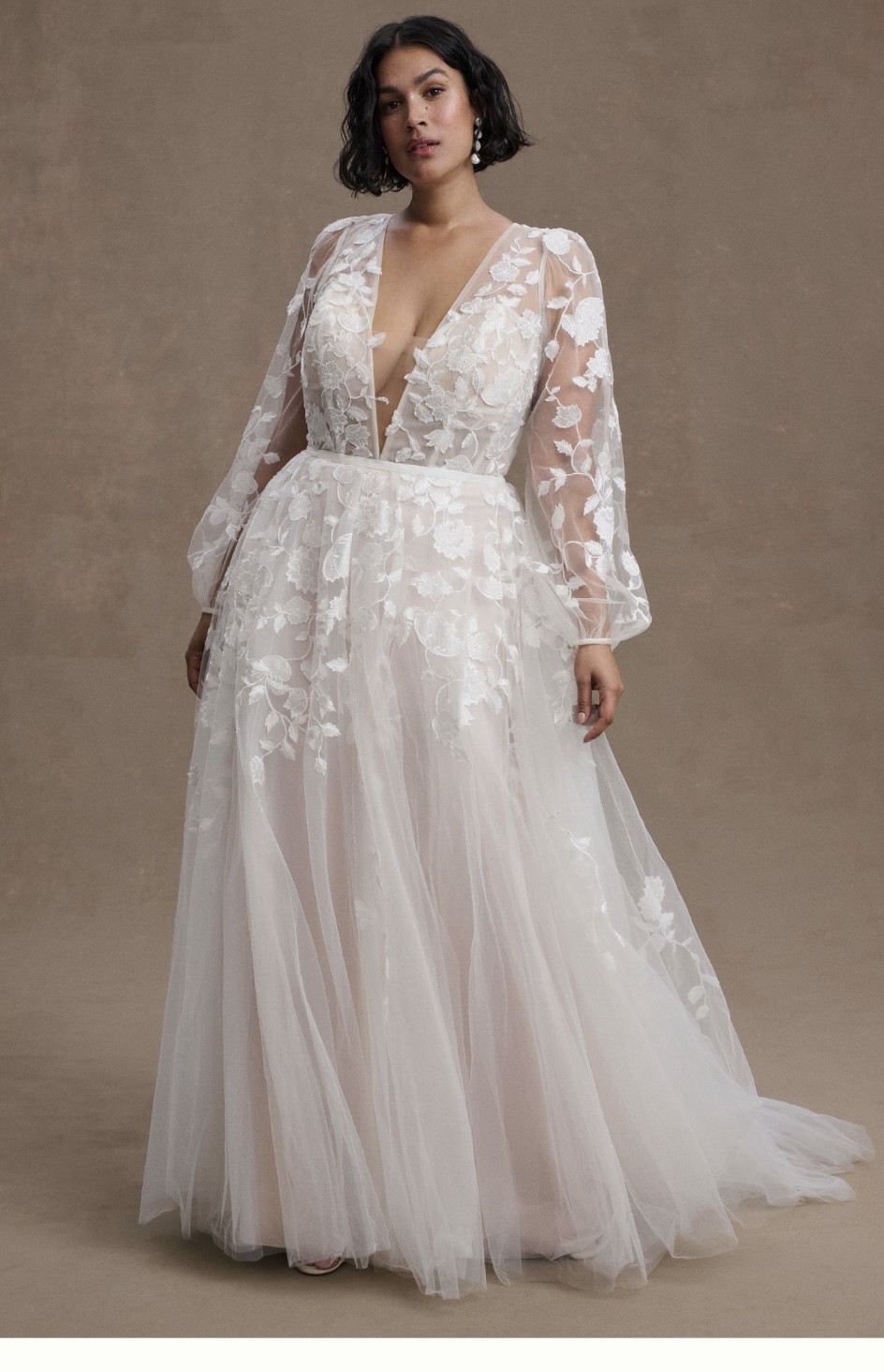Flourishing w/ romantic details, the Olen Lace Gown boasts long, sheer sleeves, floral embroidery, tulle pleats and voluminous accents. It is a stunning dress unfortunately I found another dress dress that suited me better.