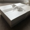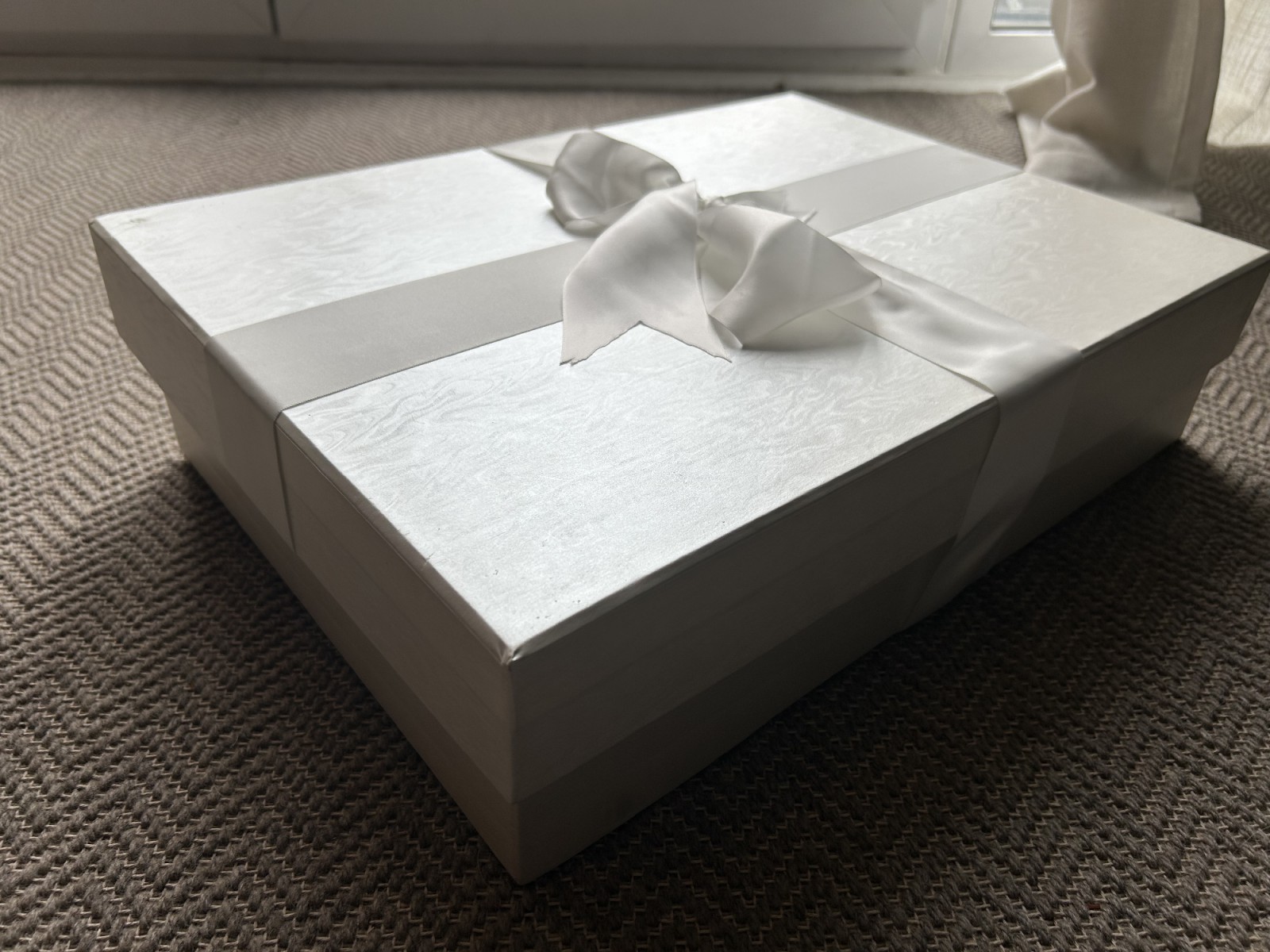 It has only been worn the once, on my wedding day, and then was professionally cleaned through the designer's cleaner and has been carefully wrapped in tissue in a beautiful white box tied with a bow ever since (sadly).