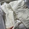 There is some faint staining at points around the bottom where it came into contact with the ground, as you would imagine, and one faint stain on the skirt, perhaps from a spill. It is creased because it has always been kept in the box. Pictures included of all these details. It would need another professional clean to address these. Otherwise, it is in very good condition.