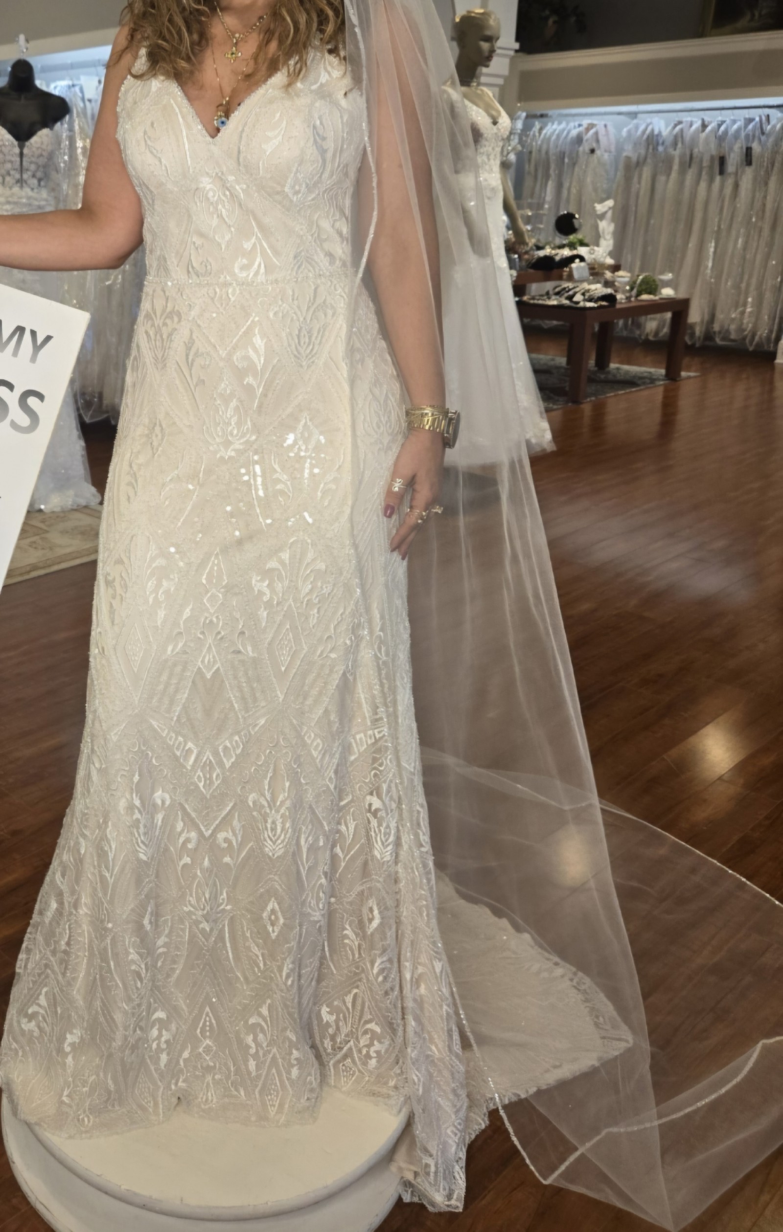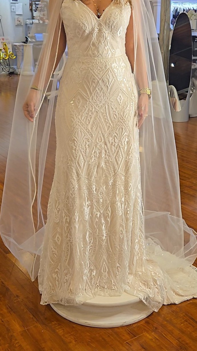 In this exquisite Kenneth Winston creation, you will not just wear a dress but embody a vision of timeless beauty that will be cherished in memories and photographs for years to come. Say “I do” in a gown that seamlessly blends tradition with a modern twist, making your wedding day as extraordinary as your love story.