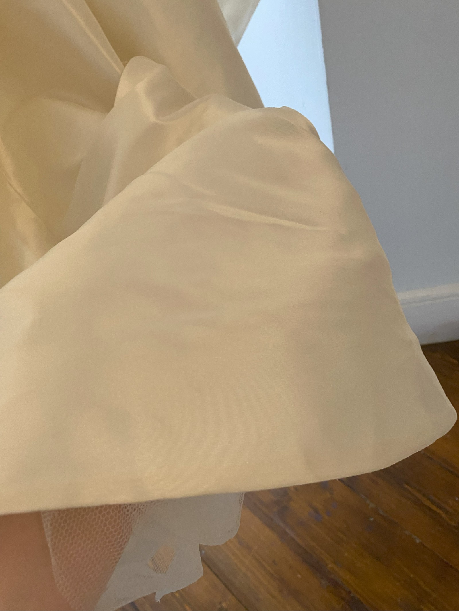 Very small and subtle scuff marks on the hem and a faint mark on the front skirt (barely visible in picture)
