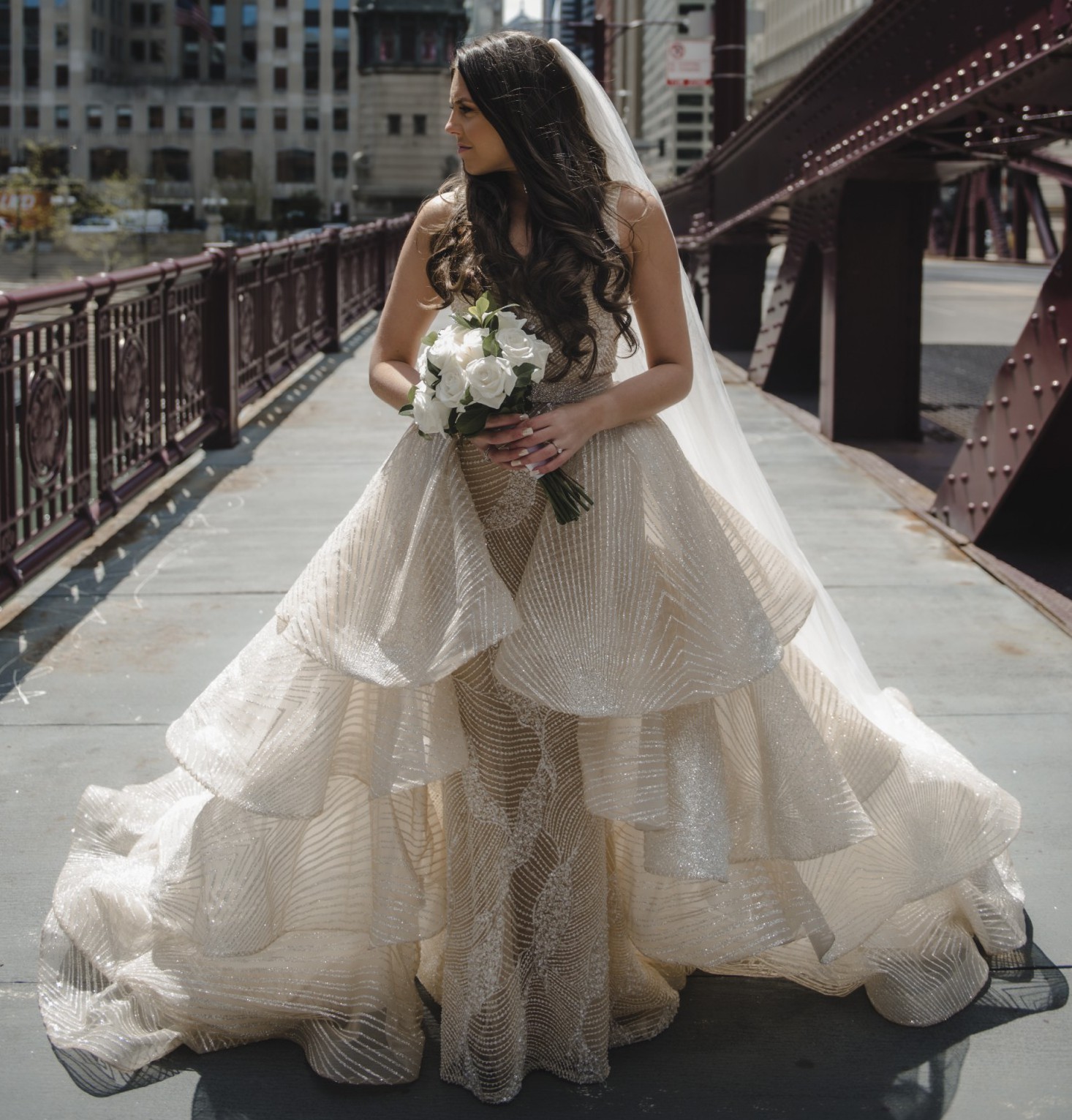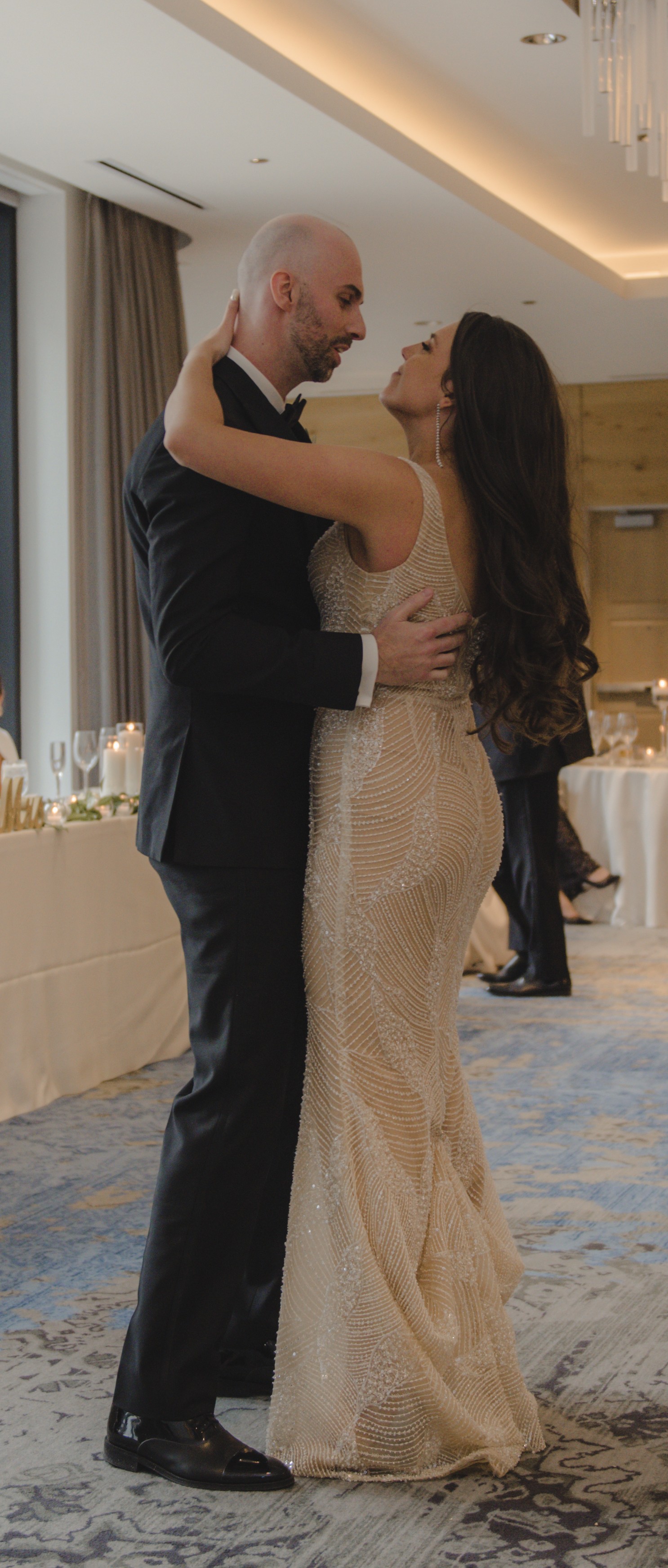 I fell in love with this dress the moment I saw it! The intricate beading, the elegant sheer bodice, and the way it sparkled with every step. It’s the perfect balance of modern glamor and timeless sophistication, and I knew it would make me feel both confident and beautiful on my wedding day, and it truly did!