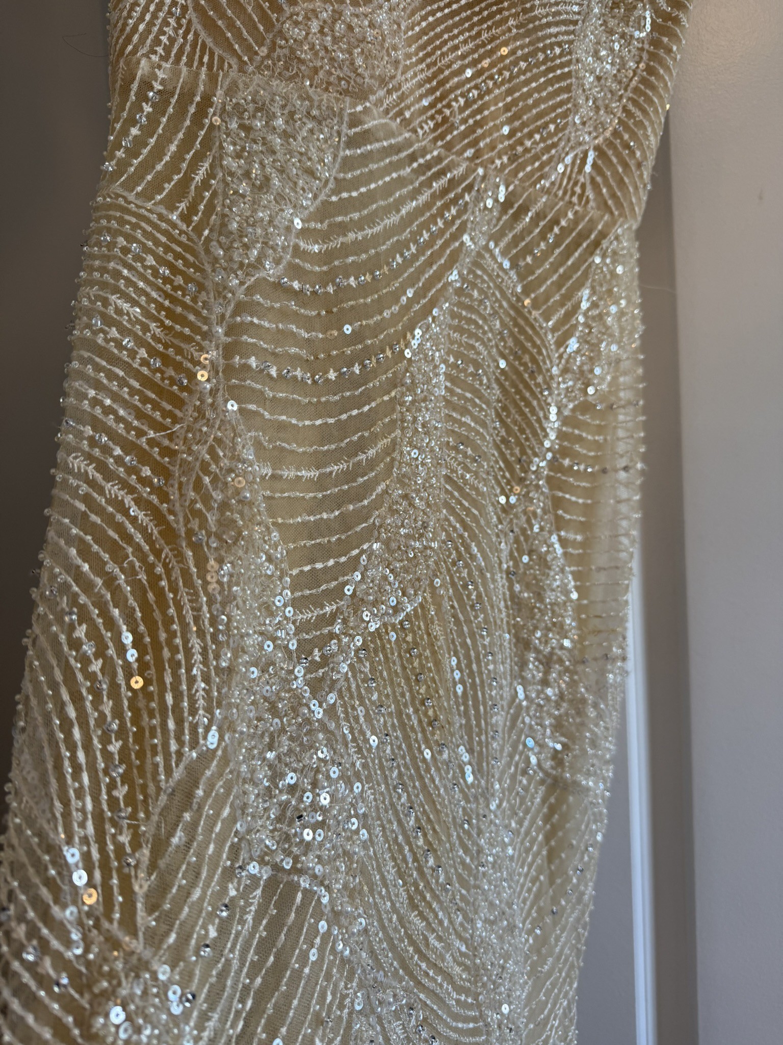 *This dress was worn once. There are some snags in the beading from normal wear, but I couldn't capture them well in the photos.