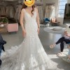 Introducing the MELANY wedding dress – a masterpiece of elegance and allure. With a V-neckline, stunning appliques, and intricate beading, this trumpet-mermaid silhouette hugs your figure in all the right places.