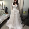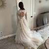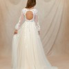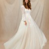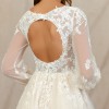 Walk down the aisle in Anadia, our whimsical tulle and lace wedding dress. Her lace illusion bodice features a flattering V-neckline and billowy full length bishop sleeves with an elastic cuff. The floral lace applique trickles down her flowy A-line skirt with godets to make you feel like a princess. She also features buttons down her open back keyhole, and of course, this dress has pockets.