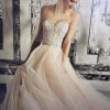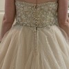 Intricate beading adorns the bodice, capturing light and creating a mesmerizing sparkle that will leave guests in awe. The added overskirt enhances the overall grandeur of the dress, offering a dramatic flair that is bound to turn heads. Designed for the strapless silhouette, this gown allows you to move freely and confidently, making your special day all the more enjoyable.