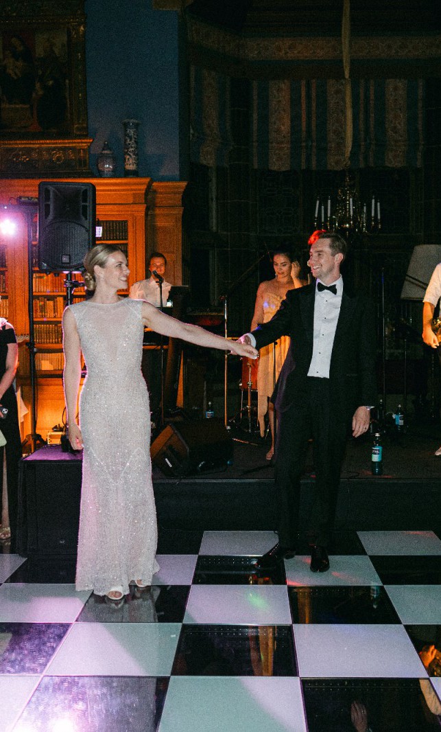 The dress is adorned with intricately sewn sequins, which catch the light you move. This dress hugs the body perfectly, accentuating your natural shape while allowing for easy movement. This floor-length gown is not just a dress; it’s a statement piece that embodies timeless love and joyous celebration.
