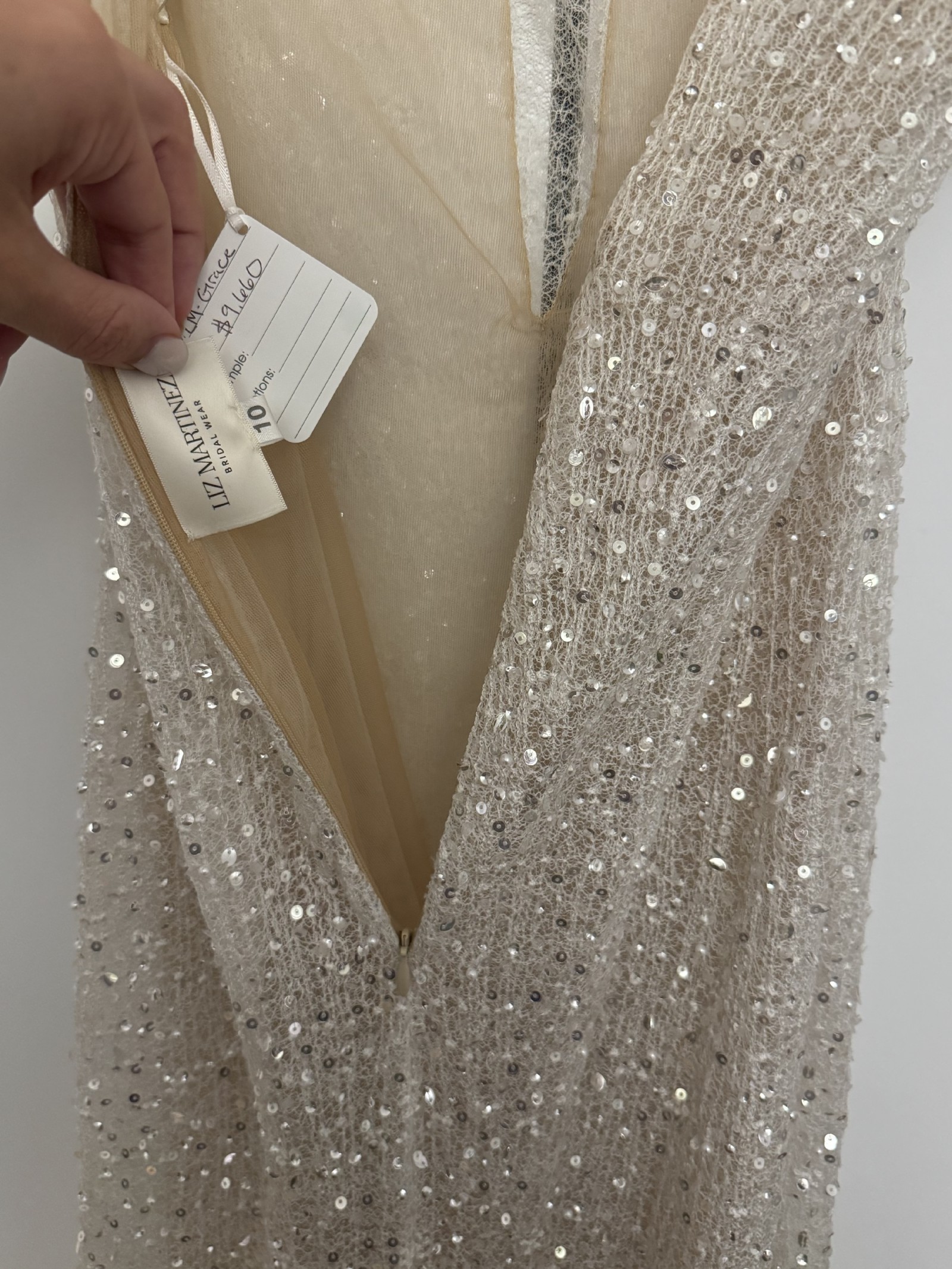 This exquisite dress, Grace by Liz Martinez, is a dream come true for any bride seeking elegance, romance, with some sparkle and subtle sexy. With its sequins and sheer look, I wore it as my dream second look and it photographed beautifully (with the added bonus of it being light and comfortable).