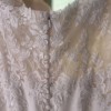 The sleeves are easily snapped on and off. There is also built-in padding. This dress could likely fit sizes 0-8 with lower sizes needing some alterations. This is a wedding dress size 8, but you typically deduct two sizes to convert to your normal everyday clothing size. The dress in my possession has not been altered. Some of the photos are of the sample gown that was tried on prior to me purchasing.