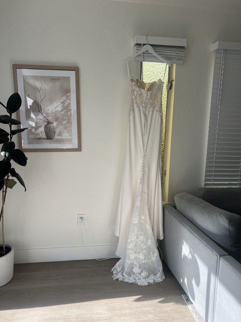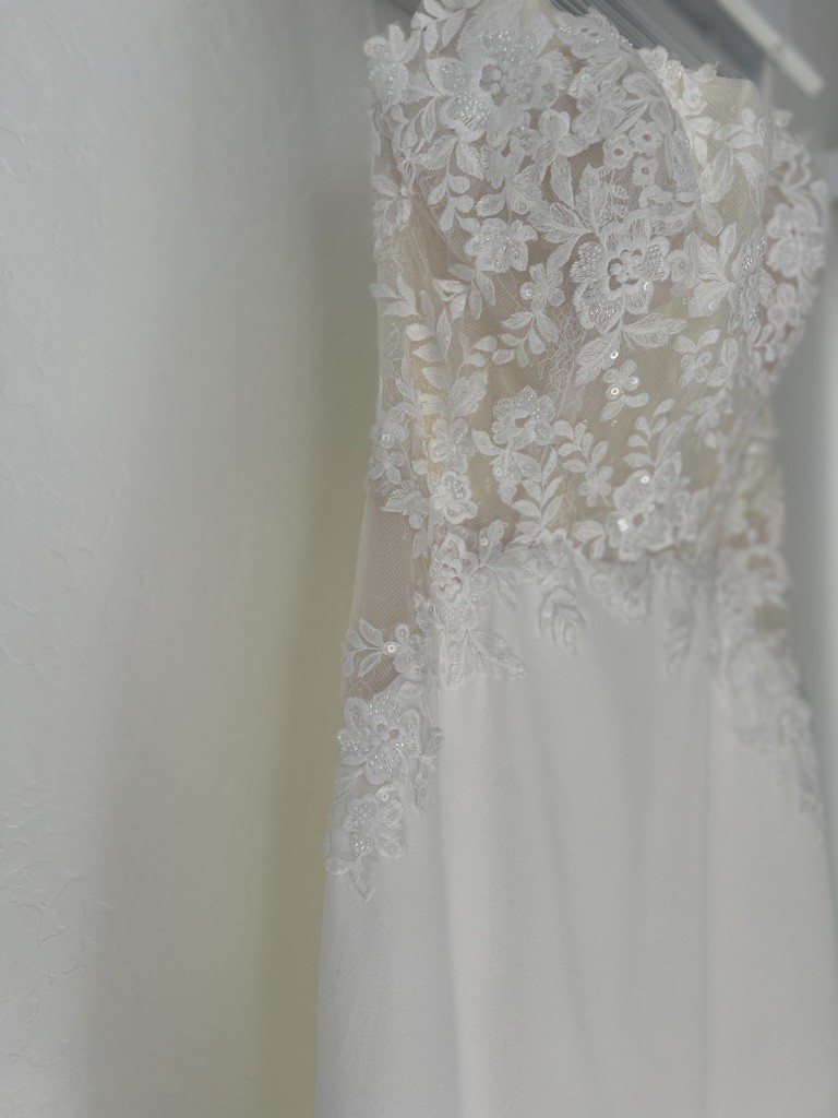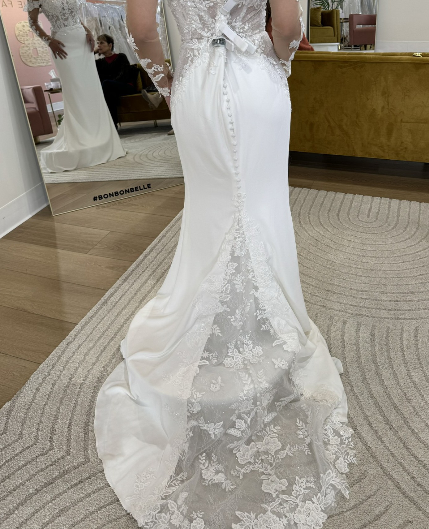 Purchased brand new for my upcoming wedding in late September 2025, I ultimately chose a different look and have never worn this dress. It’s in great condition and ready to be worn and loved by another bride. A truly special piece for someone looking for something romantic but refined.