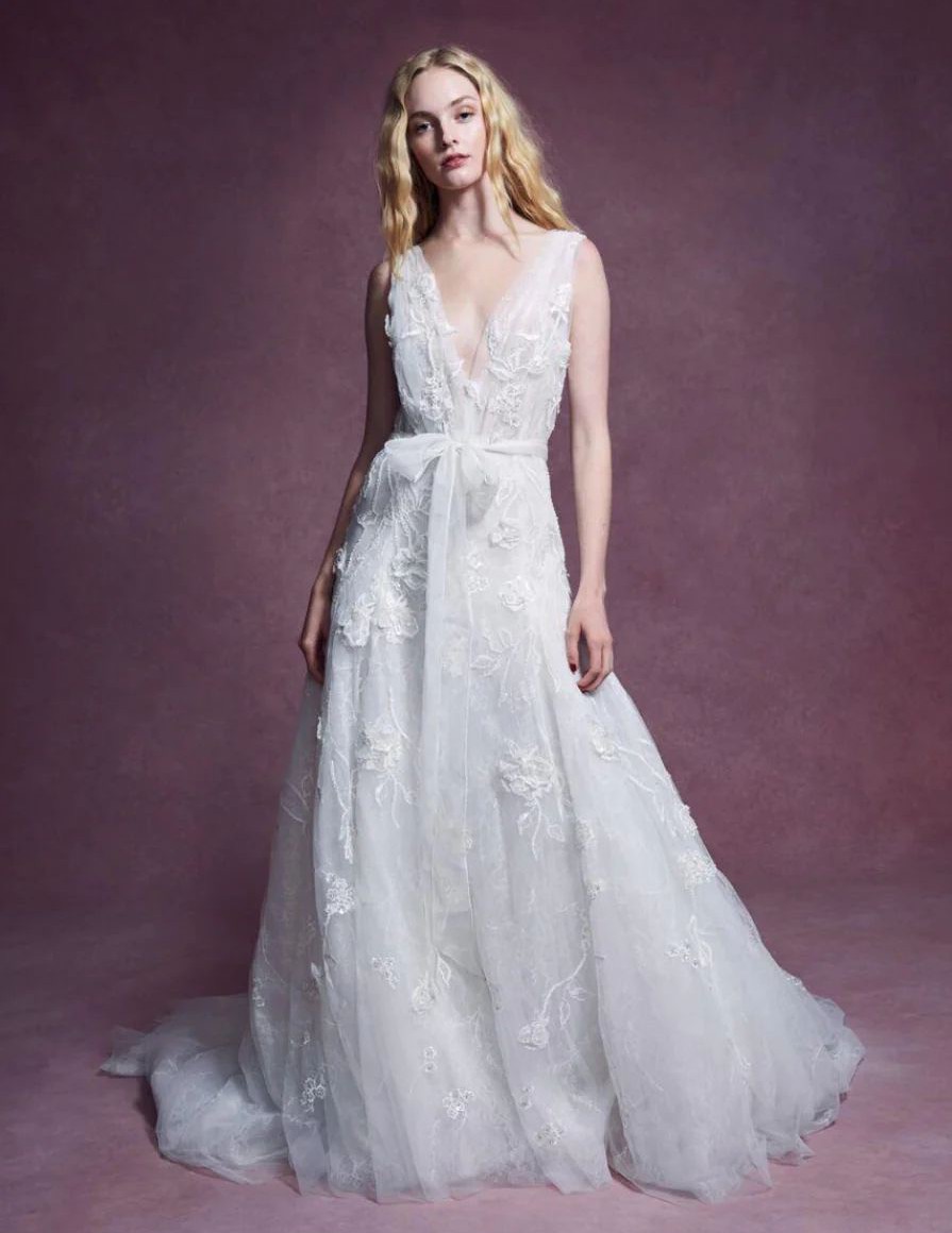‘Inspired by the Japanese art of ikebana, Marchesa’s Fall 2020 collection embraces a philosophy of balance and refined natural beauty. Just as ikebana emphasizes harmony through careful placement, this gown was crafted with the same reverence for detail and design.’
