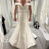 Beautiful dress which is a sculptured off the shoulders ivory mikados mermaid dress with a lovely length train. Never worn just tried on , still in box came in, new dress.