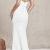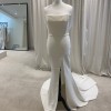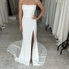 Boned and fused straight neckline bustier, with a fitted crepe skirt and asymmetrical slit.